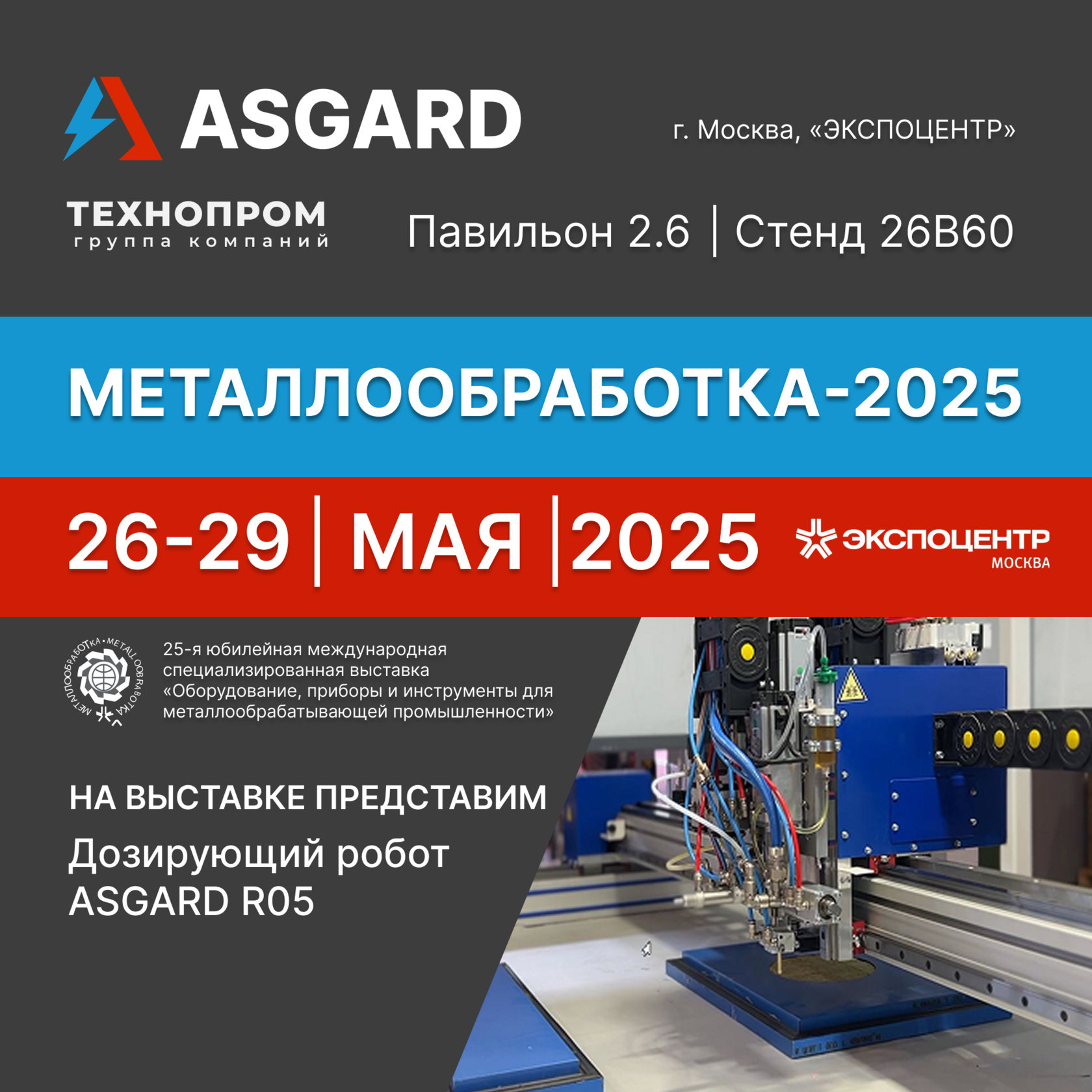 Компания "Асгард" приглашает вас посетить стенд промышленной группы компаний "ТЕХНОПРОМ" на на крупнейшей отраслевой выставке «Металлообработка 2025», которая пройдет в Москве ЦВК «ЭКСПОЦЕНТР»